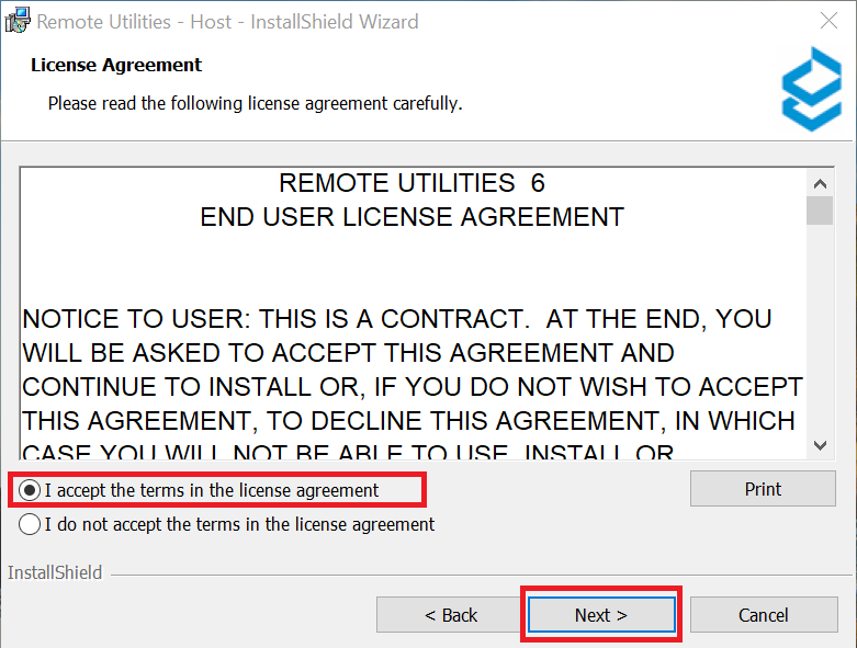 5.- Acepta los terminos de uso del software y presiona en Next: |