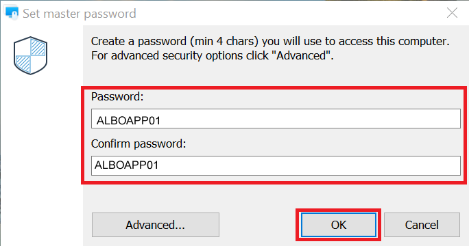 9.- Se te solicitara una contraseña, ingresaras ALBOAPP01 en mayusculas como contraseña y presiona OK |